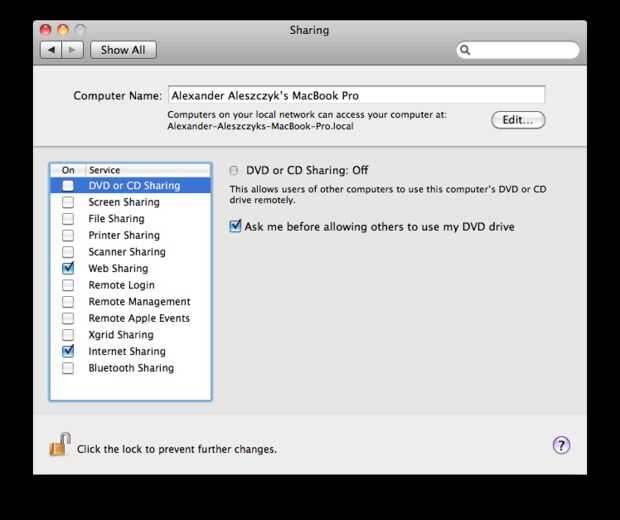 Compruebe el compartir Internet en la barra lateral