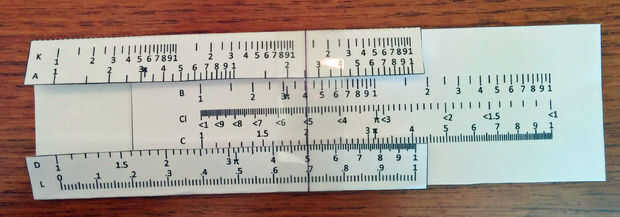 Su regla de diapositiva está listo para usar. En la foto C y D se establecen escalas de multiplicar 25 veces 2.