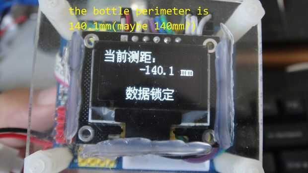Usar esta regla para medir el perímetro de una botella, OLED show - 140.1 mm, creo que este perímetro de botella tal vez es 140 mm.
