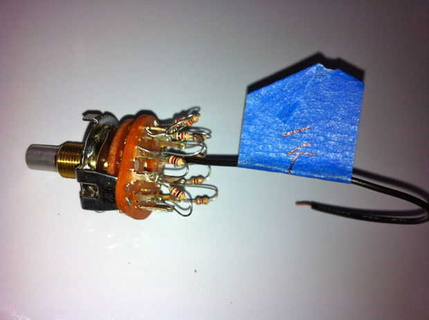 Elija cualquier terminal de la posición '0', y Solde un resistor en terminal y que a su lado en la parte derecha si usted está buscando en el interruptor con el mando apuntando hacia usted. Esto es por lo que su número va aumentando en orden hacia la derecha (que es básicamente cómo todas las perillas creo).