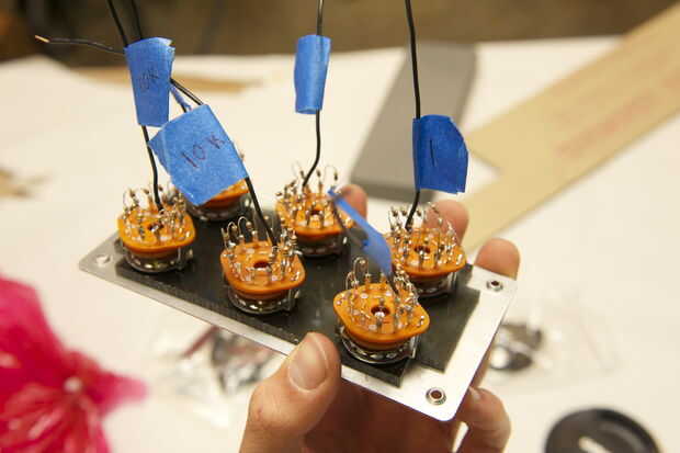 Asegúrese de que todos los interruptores estén en la posición 'cero' (Asegúrese de que la pequeña cosa contacto metal toca la 'primera' resistencia de cada interruptor, el 'input').