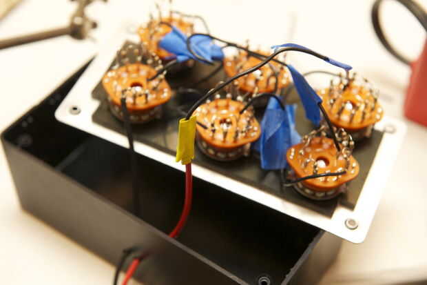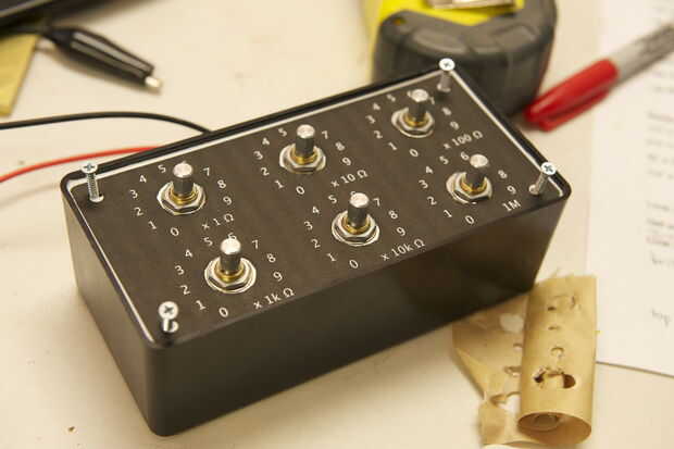 Ahora, la soldadura más cables a la entrada del interruptor de orden más alto y la salida del interruptor de orden más bajo. Estos serán los cables que sobresalen de la caja y actúan como su general entrada y salida. Yo podría mencionar que no hay destino real entre una entrada y una salida, por lo que no te preocupes acerca de qué manera que conectes tu circuito de resistores.