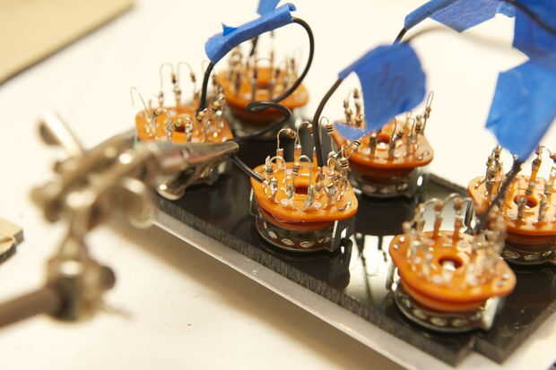 Ahora es el momento para conectar los conmutadores juntos. Soldadura el cable ~ 3 pulgadas desde la salida de la orden más alta del interruptor a la entrada del interruptor de orden más alto siguiente. Si usted puede conseguir lejos con usar cables más cortos, ¡ adelante! Se verá más bonito si lo haces.