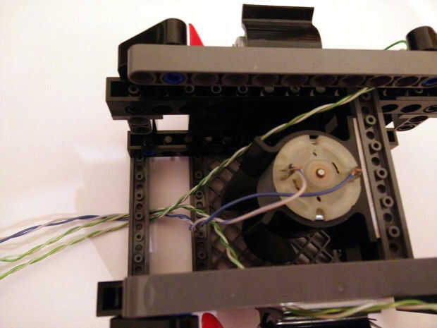 Pase el anclaje para los motores de lado por debajo del montaje del motor y entre la viga inferior y el de ladrillo larga y luego hacia la parte posterior o el ROV.