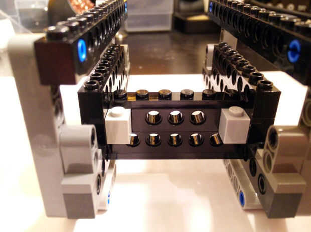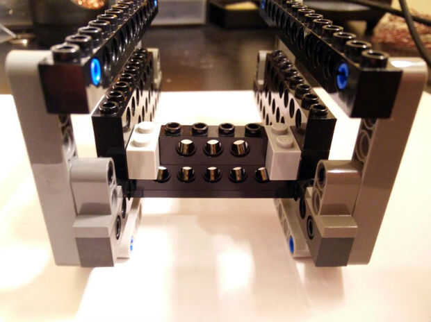 Es importante que los ladrillos de dos clavijas saliente en la parte delantera de lo ROV cuando necesitamos una superficie plana en el interior de la bancada.
