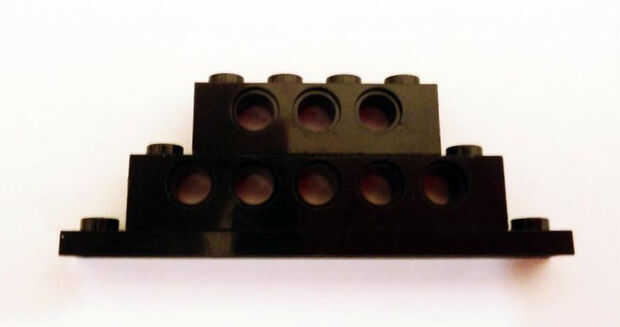 Los bordes de la placa deben ir en los dos ladrillos largo, la parte superior del ladrillo de 1 x 6 pasará bajo los ladrillos de dos pines y el ladrillo de 1 x 4 va a quedar medio.