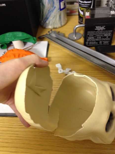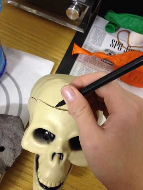 Dibujo la línea no es necesaria, pero de todos modos lo hice. Corte en el cráneo, la bolsa de sangre, es muy peligroso. Por favor tenga cuidado al cortar.