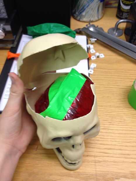 La forma más efectiva es llenar una bolsa de plástico, cierre la parte superior cerrado con cinta adhesiva, después pone esa bolsa dentro de una bolsa de plástico vacía que usted también sello cerrado con cinta adhesiva. Esto puede parecer excesivo pero he tenido la rotura de la bolsa me 2 veces con sólo una bolsa y un poco de cinta adhesiva. Cuando acabes con el bolso de la sangre, o cerebros, verifique que no hay las brocas afiladas de plástico dentro del cráneo. Si hay alguna, se puede utilizar papel de lija o usted puede cubrir con cinta adhesiva, o trabajos de manera. Después de comprobar, insertar el cerebro lentamente, luego pegamento con cuidado la cabeza de cierre.