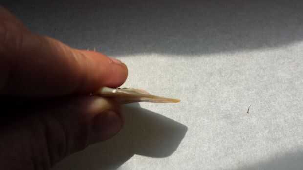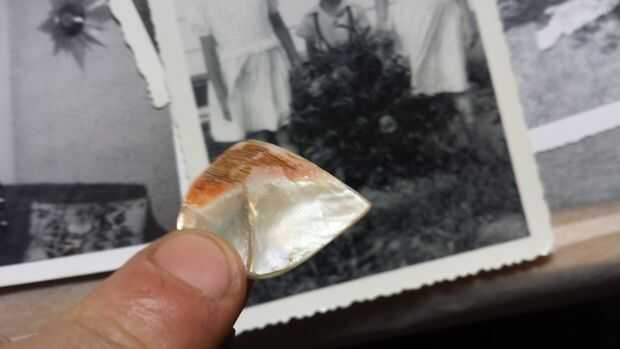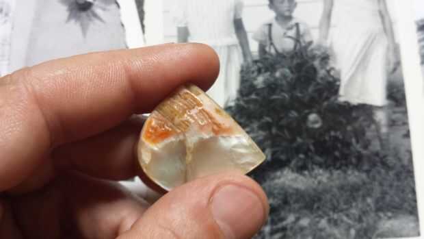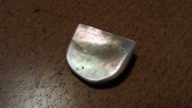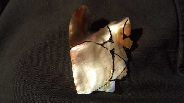 Este año tuve que tallar uno de concha de abulón rotos rescatados.