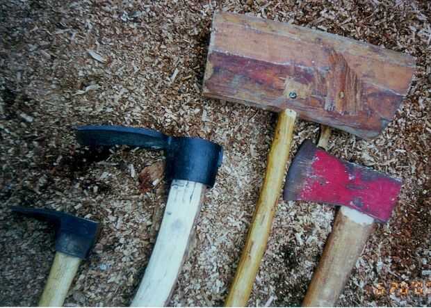 Hice la pequeña pala de la manija, pero ambos azuelas son ejes de corte selección. La cabeza derecha maul es pana madera, ligero para los niños del barrio me podrían ayudar a dividir registros. La última foto es mi pila de ironwood cuñas de separación. Algunas de las cuñas se cayeron en la laguna y cuando encontré otra vez había convertido en material súper resistente milagro naranja.