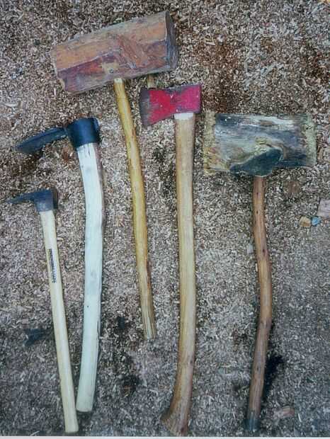 Aquí están algunos mangos de herramienta que hice en el atolón de Majuro. El mango de hacha y maul manijas son hierro.