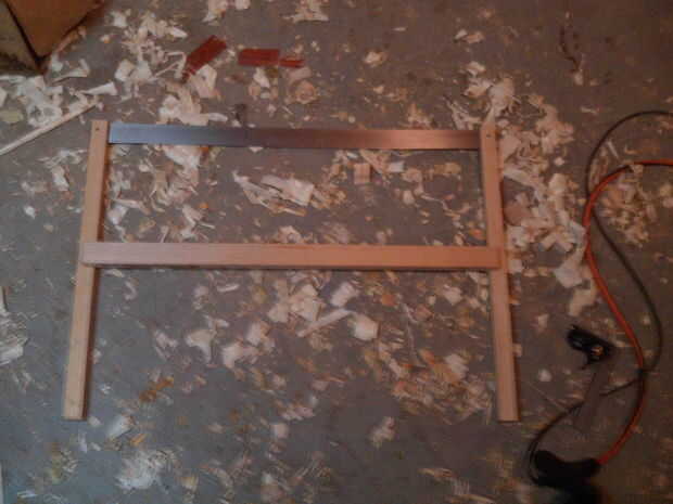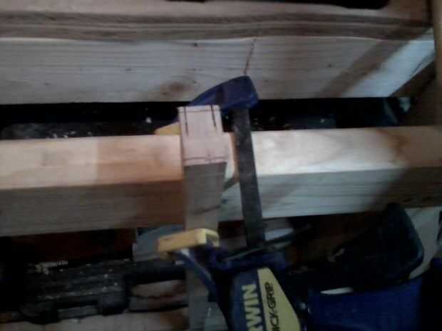 Para disponer las espigas, puse mi medidor marca a un milímetro y esta había marcado de cada cara. Lamentablemente, mi tornillo moxon no podía utilizarse en el momento, así que quité mi estante de mi banco de trabajo y fijar la camilla a la mesa de trabajo. Entonces empecé a cortar al hombro marcado.