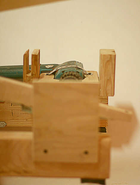 Muesca en la caja y me adjunta 3 puestos para acoplarlo. La delantera derecha y trasera derecha son sólo dos mitades de un trozo de 2 x 4 cortado a la medida y se atornilla a la placa de perforación. La izquierda es sólo una desecho 0f 3/8 madera contrachapada. Puesto que la altura era flexible y ancho carecía de importancia aún no tenía que cortarlo.