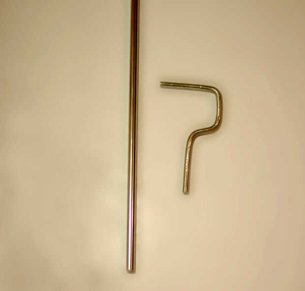 Aviso que mío el metal va más allá de centro tras el gancho. El propósito de es tratar de contrarrestar el metal en el otro lado para reducir la vibración. Incluso podría ser una mejor manera de hacer un gancho idéntico en el otro lado así que usted puede estar seguro que son del mismo tamaño. (Menos como un "?" y más como una "S".)
