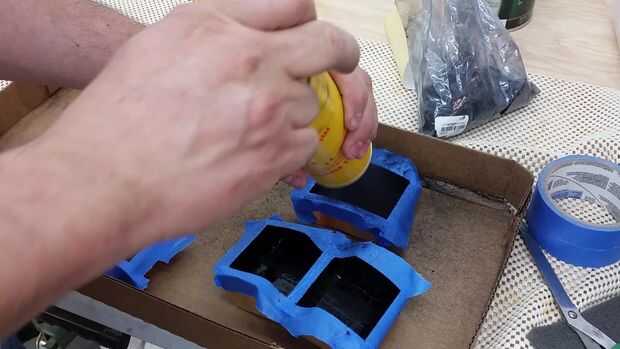 He grabado todo el vacío de los cajones y cepillado de una capa de cola. Coloqué las fibras ante en el aplicador y había aplicada a las fibras.