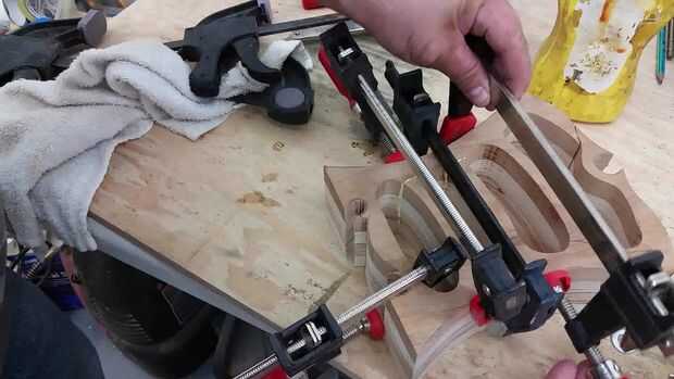 Aplique pegamento en las costuras o cortes la crearon como parte de la corte de los cajones. Tómese su tiempo y asegúrese de que todo se alinea. Utilice varias abrazaderas y un montón de presión se aplican a estas articulaciones. Pegamento apretón hacia fuera es una buena señal que se está aplicando la presión suficiente. Con un trapo húmedo, limpie cualquier pegamento apretón hacia fuera y permitir que el pegamento se seque.