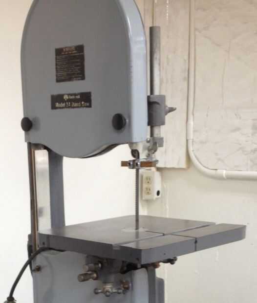 Mi sierra es un más viejo 14" Rockwell (Delta). la tabla es aproximadamente 12" largo por 11" de ancho. Tiene dos pestañas en el extremo de cercano y de lejos de la tabla con agujeros roscados (1/4-20). Pusieron allí para montar raíles valla. Estas bridas extienden más allá de la mesa por aproximadamente 1/4" cada lado. (Si no tiene agujeros de montaje, entonces usted tiene algún trabajo serio para perforar y golpear ligeramente en la mesa de hierro fundido.)