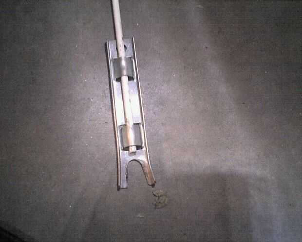 El asta de la bandera en un soporte de metal, que sentado en el eje entre el eje y el bastidor del remolque. El soporte de metal duró unos dos meses antes de que llegara aplastado y doblado y suelta.