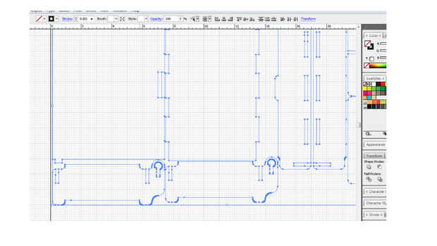 4. Seleccione los bloques y el contorno de las piezas y con la herramienta de conquistadores (si usted no puede encontrar uso ventana > Buscatrazos y aparecerán) elija la opción "Restar área de forma".