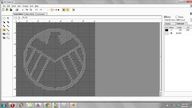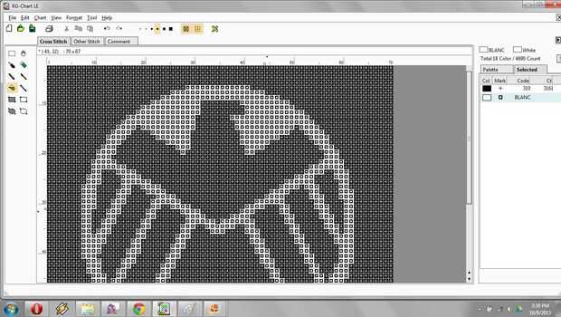 Mientras estamos aquí, hay dos más trucos que usted puede hacer con Floodfill y cambian de Color. Nuestra imagen aquí actualmente está diseñado para ser un cuadrado sólido de puntadas. Bueno, tal vez no queremos sentarse allí y todo eso. Haga clic con la herramienta Floodfill para quitar las manchas negras, y luego cambiar los blancos a un gris de su elección y presto! Una imagen se puede utilizar en paño oscuro (y tramposo).