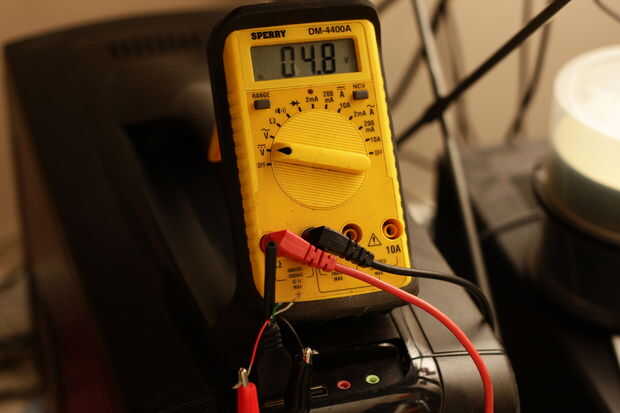 Después se hackear hasta el enchufe del USB, encontrar los cables positivos y negativos. No asuma que el rojo es positivo y el negro es negativo. Nunca asuma en electrónica. En mi caso, fue sí rojo + y negro fue -:). Pero he comprobado y eso es lo que cuenta. Cortar los otros cables si, sólo necesita energía.