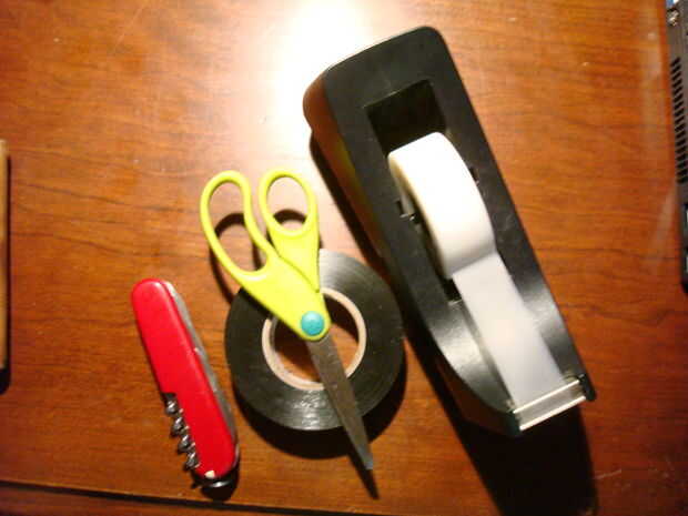 lo que usted necesita: -tijeras -cinta (yo usé cinta scotch la cinta interior y eléctrica para el exterior) -artículo a hacer el caso para -a pocos minutos y paciencia!