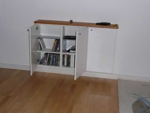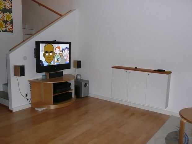 necesitaba una solución de la televisión y no podía encontrar los muebles adecuados. Tuvimos una mesa alrededor de la cual no estaba en uso. Así sucedió que puedes ver aquí.