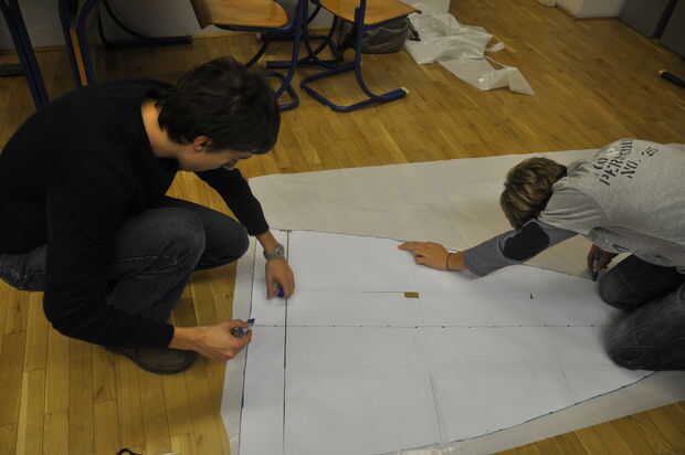 - hacer una plantilla para una gore de paracaídas (nuestro tenía un diámetro de 1,5 m)