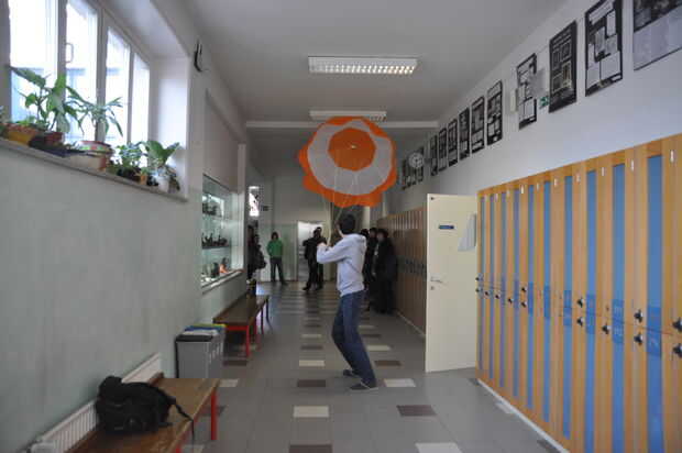 - Usted puede hacer un agujero en la parte superior del paracaídas (el agujero le ayudará a abrir el paracaídas más rápido y estabilizará la caída)