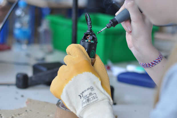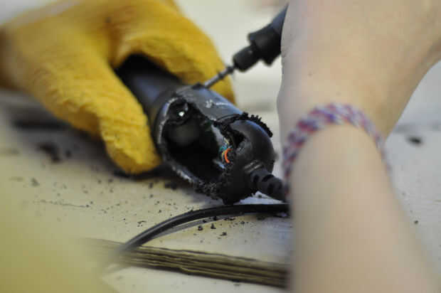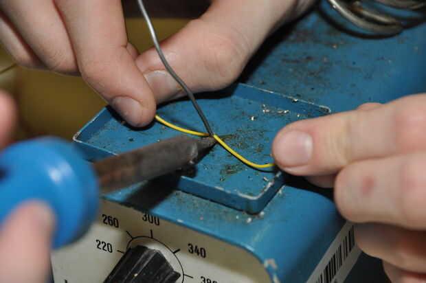 Primero desmontar los sensores. Mientras que hacerlo ten mucho cuidado no se dañe durante el corte de su carcasa de plástico. Recortar la carcasa interior de los sensores puede retirarse de él. Entonces acortar los cables y cortar el plástico grueso alrededor de ellos. Suelde los cables acortados de nuevo juntos.
