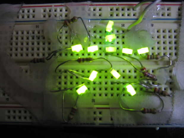 Hacer su camisa jugar Juego de la vida de Conway, o convertirlo en un jacket ligero bicicleta durante la noche, como Leah Buechley. En realidad, leer todo de sitio web de Leah para inspiración, ha sido mi héroe desde que estaba en la escuela secundaria.