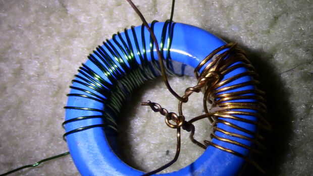 Es una buena idea poner una pequeña cantidad o epoxi sobre su bobinado primario para evitar que se deslice mientras están enrollando el secundario.