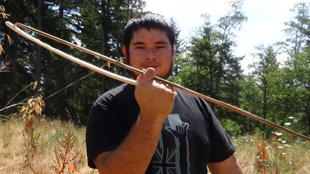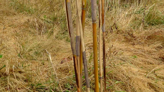 Ahora vamos a construir nuestro dart. Tengo un bambú agradable trabajar con, pero cualquier tipo de caña o pimpollo hará un buen dardo. Prácticamente cualquier tipo de caña o bambú funcionará, igual que la mayoría de cualquier sesión de madera dura o pimpollo. Plantones de sauces y álamos también funcionan bien para dardos. Usted quiere encontrar algo que es flexible pero no demasiado látigo. Una gama de buen diámetro es 1/4 de pulgada a 1/2 una pulgada. Si usa un árbol joven, puede ser más gruesa para tener en cuenta la contracción y la pérdida de corteza.