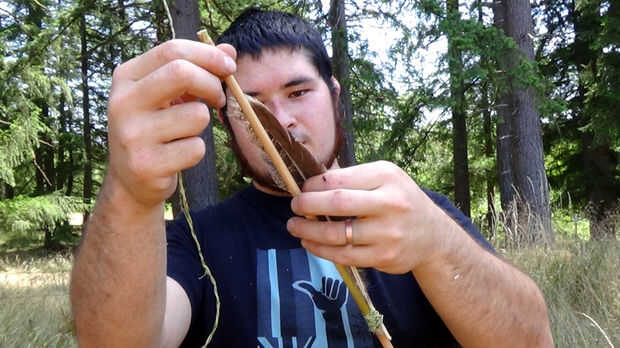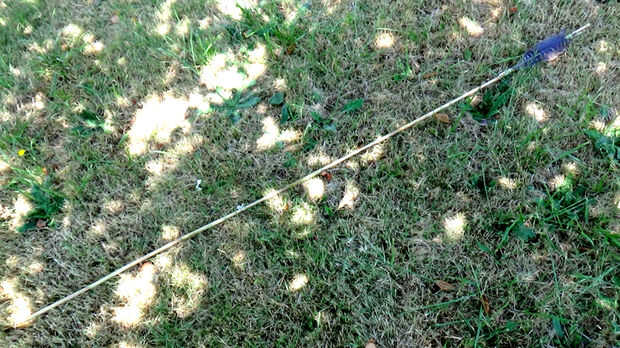 Afilar la punta para arriba y tienes tu dardo terminado! Simplemente el punto servirá como un punto de gran práctica y todavía te dará la opción de agregar un foreshaft o encavar más tarde un punto de piedra.