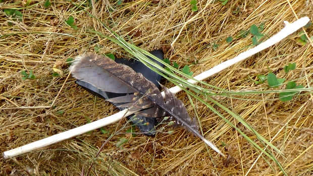Vamos a estar haciendo una muy simple single-pluma fletch. Esto es ideal para guardar todo plumas para proyectos posteriores mientras sigue recibiendo buen uso a ellas ahora mismo. Una vez que haz colocado y dispone de más tiempo puede dividir y procesar la pluma de plumas más permanente.