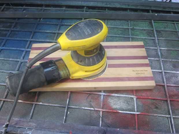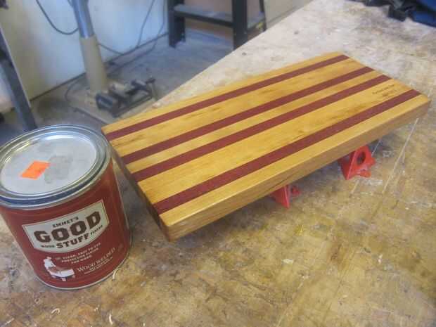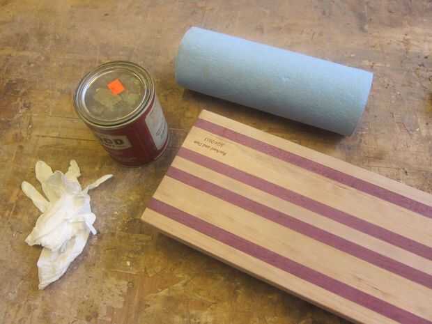 Poner en un par de guantes y manchan las cosas buenas todo el tablero de corte. Las instrucciones dicen que esperar 10 minutos o algo antes de deshacerse de las marcas de manchas pero he tenido buenos resultados solo alisar el acabado de como ir. Dos o tres capas de acabado parece que funciona bien para las otras tarjetas que he hecho.