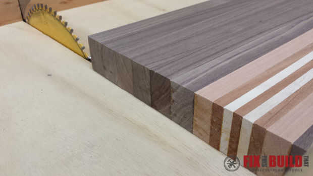 Cortar el tablero a medida en la Sierra de mesa para limpiar y nivelar los extremos. Usted generalmente pierde una 1/4 a 1/2" en este proceso así que factor en las dimensiones de las piezas iniciales.