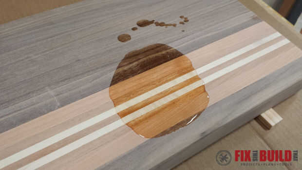 La arena el tablero a partir de grano 80 y luego ir a través de 120, 150 y 220 con una lijadora orbital. Terminar el lijado haciendo a mano granos de 320 y 400. Si desea un perfil de los bordes puede utilizar un poco roundover en un router para hacerlo ahora también.