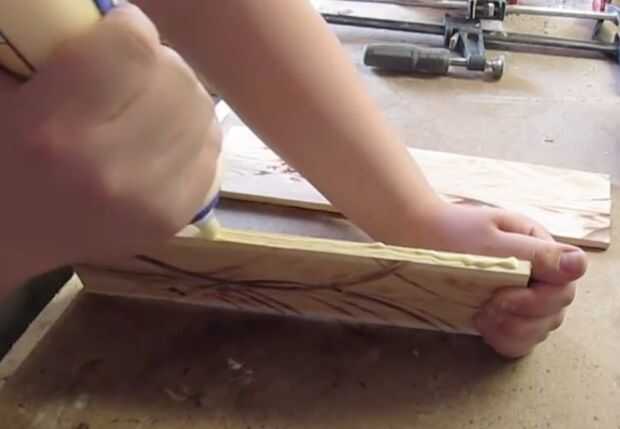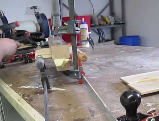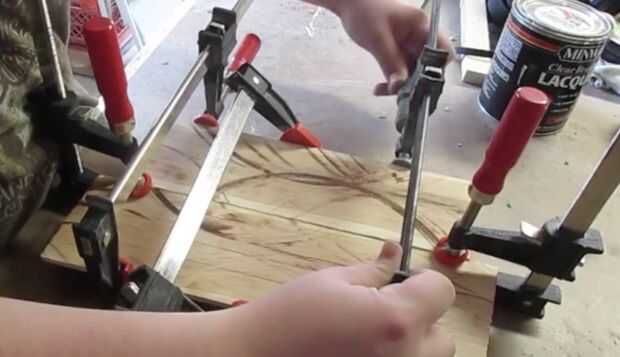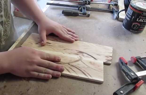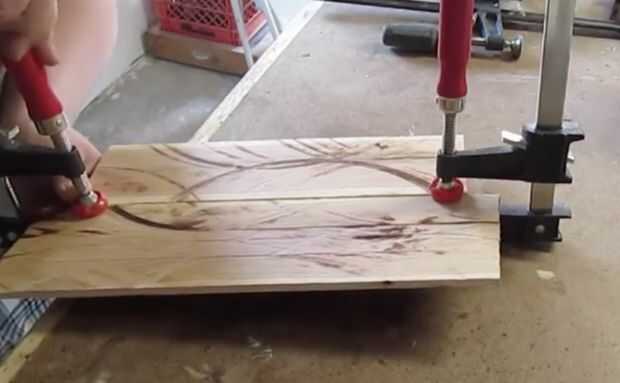 Ahora si impresión los planes PDF, verás lo que estoy hablando un poco mejor, pero básicamente pegue tres paneles con dos de ellos que el grano vaya a lo largo y uno de ellos que el grano vaya a lo ancho. No hay trucos aquí. Sólo corrió una gota de pegamento para madera Titebond II a lo largo de un borde y aplicar cierta presión de sujeción. Ayuda a envolver un par de tableros en cinta de embalaje y sujete el panel entre ellos mantener todo plano.