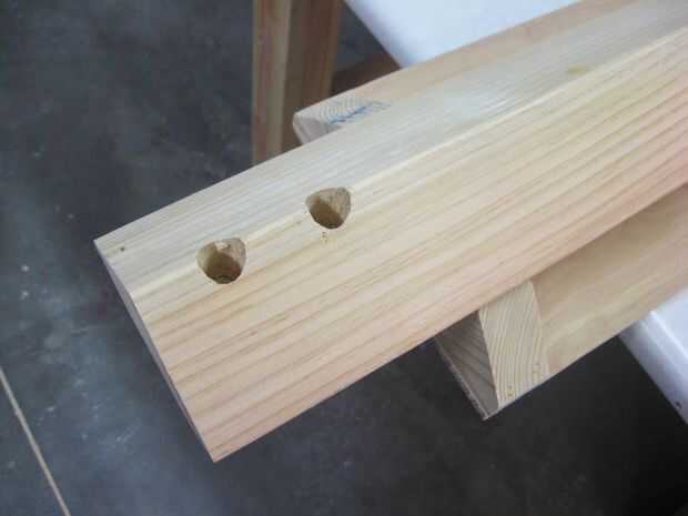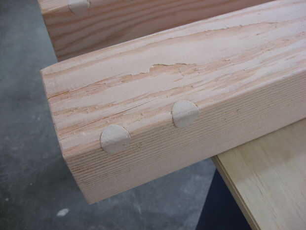 Fue una ruta diferente y rosca a un tornillo de 4 pulgadas regular a través de orificios aburridos desde el lado externo de cada pata y luego conecta los orificios con un gran taco. Esto era prácticamente un experimento, pero me gusta la forma en resultó y lo haría otra vez para patas de futuro.