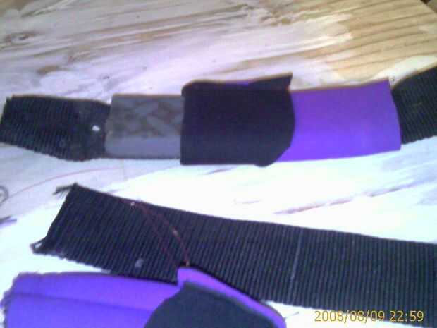 Tome un pedazo del rectángulo de juego web y coser una puntada hacia abajo el borde para hacer un tubo y deslice la pieza de espuma web a través de él. Hace una cómoda correa para el robusta.