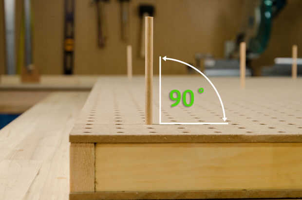 4. Pegar pasadores a través de dos juegos de agujeros y comprobar visualmente que son verticales. A menudo, un taco de fijación en un punto hará que otros lean; mantener el ajuste hasta que queden todos como cerca vertical como usted puede conseguir. No tiene que ser perfecto, cerca es suficiente.