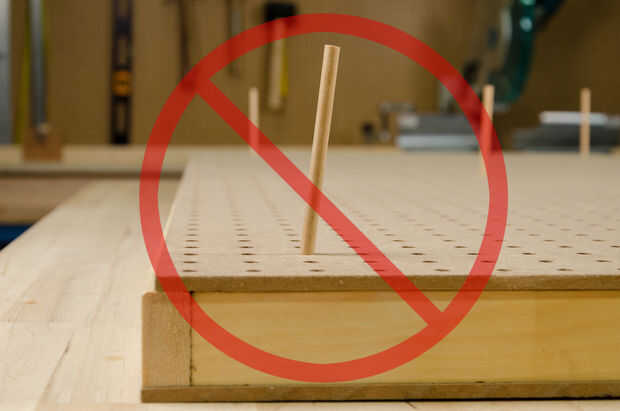 3. Utilice al menos tres clavijas para alinear los orificios en el panel superior con el que está en la parte inferior. Es importante asegurarse que los tacos se pegarán directamente cuando usted está construyendo su mármol ejecutar.