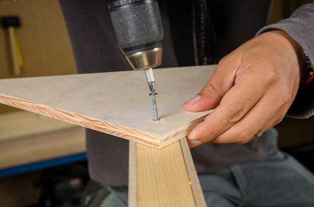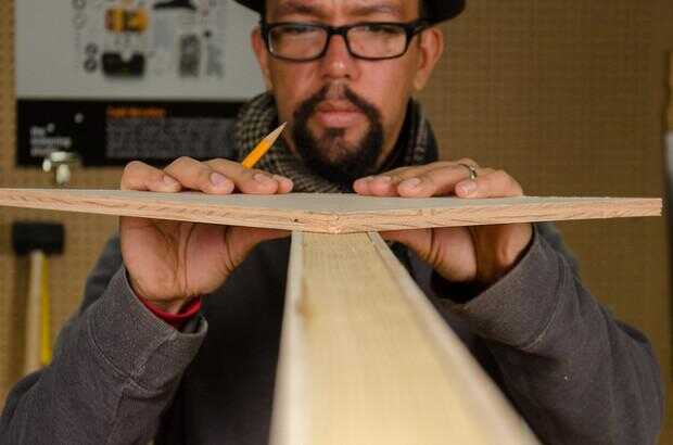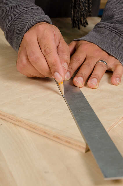 1. Encuentra o cortar un trozo de madera que mide aproximadamente 15 pulgadas de cuadrado. Dibujar una línea de esquina a esquina y cortar el cuadrado en dos triángulos iguales (pies).