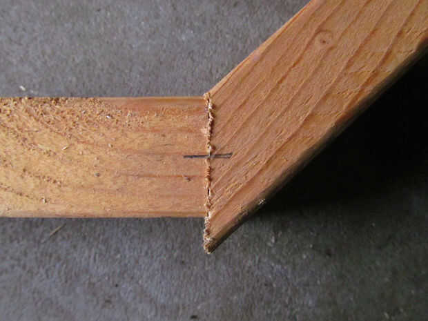 -Presione la cara angulada de la kicktail contra el extremo de la tabla y trace una línea a través de ellas aproximadamente hasta la mitad del lado del tablero.
