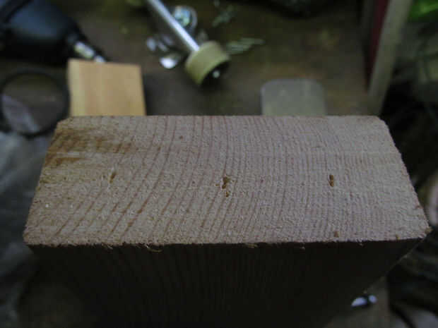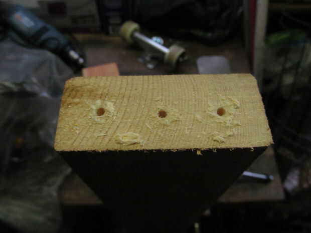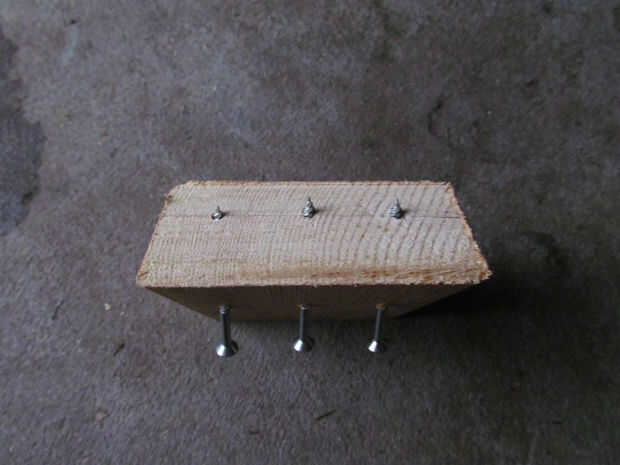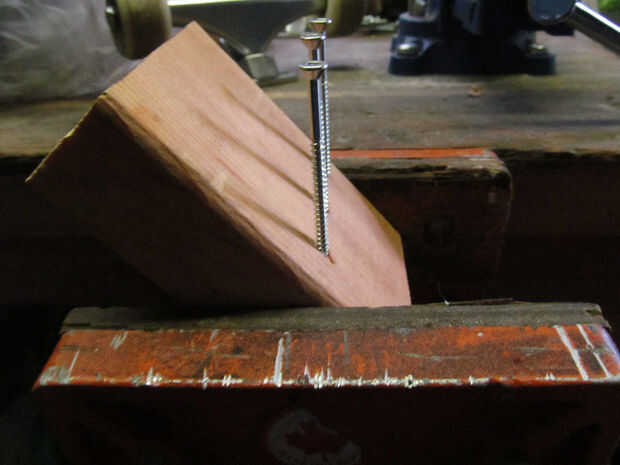 -Conducir los tornillos de 2,5" por el kicktail para que las puntas sobresalgan un poco de la cara angulada.