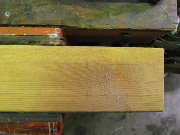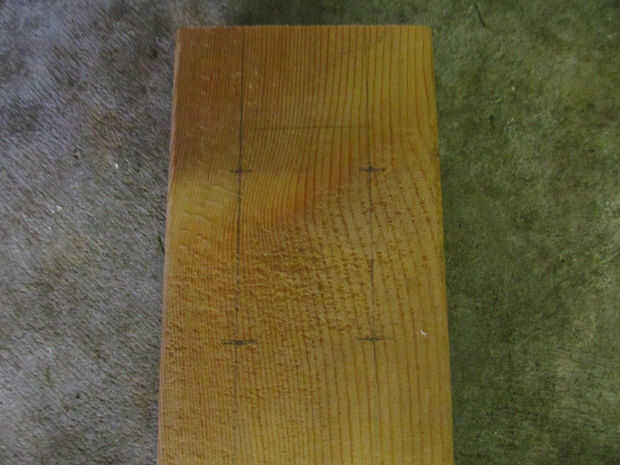 -Dibujar dos líneas paralelas el abajo la longitud de la tabla que se alinean con los centros de los orificios a ambos lados de los camiones.