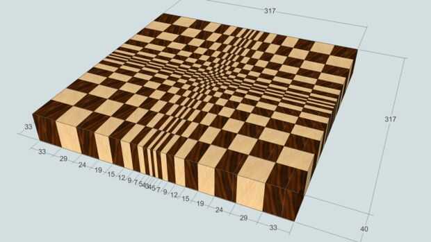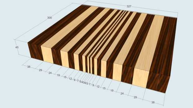 Primero debe hacer dos paneles de madera iniciales. Cada panel consta de arce y nogal las tiras. El panel 2 º es un "color negativo" del panel 1.