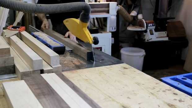 Hacer el espesor necesario de las tiras en el cepillo. Es muy importante cepillar todas las tiras del mismo grosor de ambos paneles a la vez en el mismo nivel de la cepilladora.