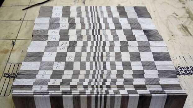 Serrar tiras de grano de extremo ancho 42-43 mm. 4-5 tiras suelen ser suficiente para hacer una tabla.